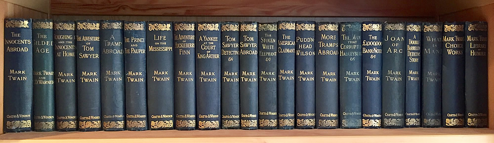 Mark Twain's works issued by Chatto and Windus in this type of binding include the following titles. (Illustrators whose names appear after a title designate an artist whose work did not appear in the American editions of these same titles.)